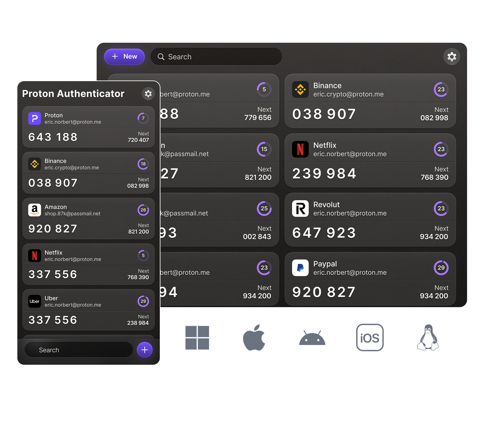 Download the Proton Authenticator app for Linux to get 2FA codes and backups on your Linux device.