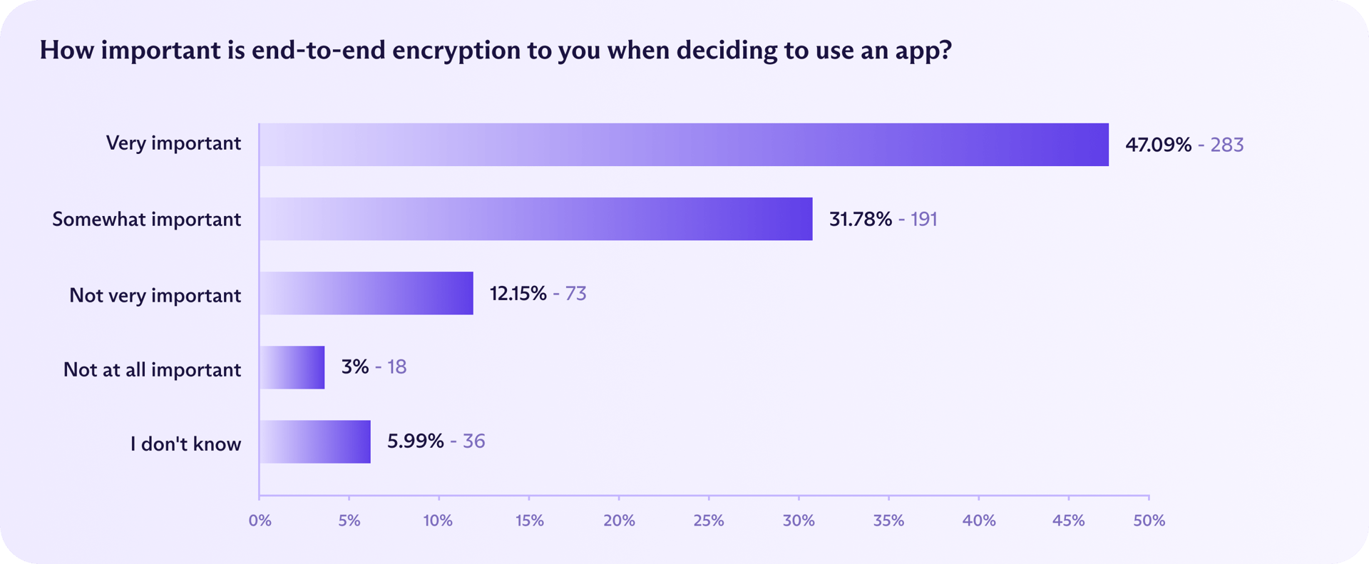• Nearly half (47%) said E2EE was “very important” — the highest of all four countries.
