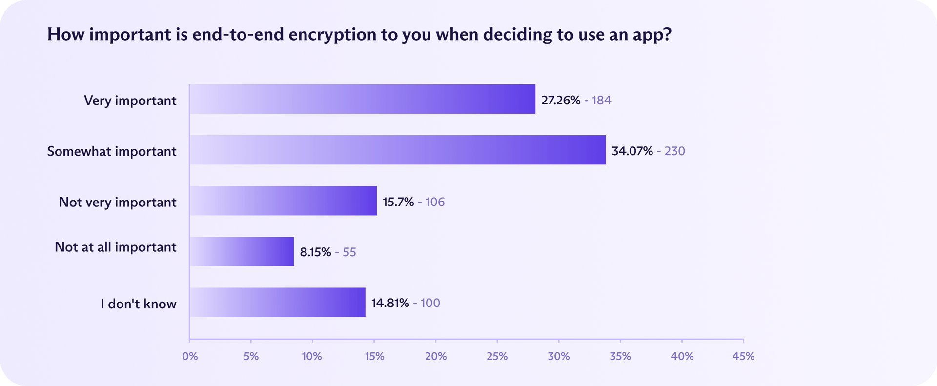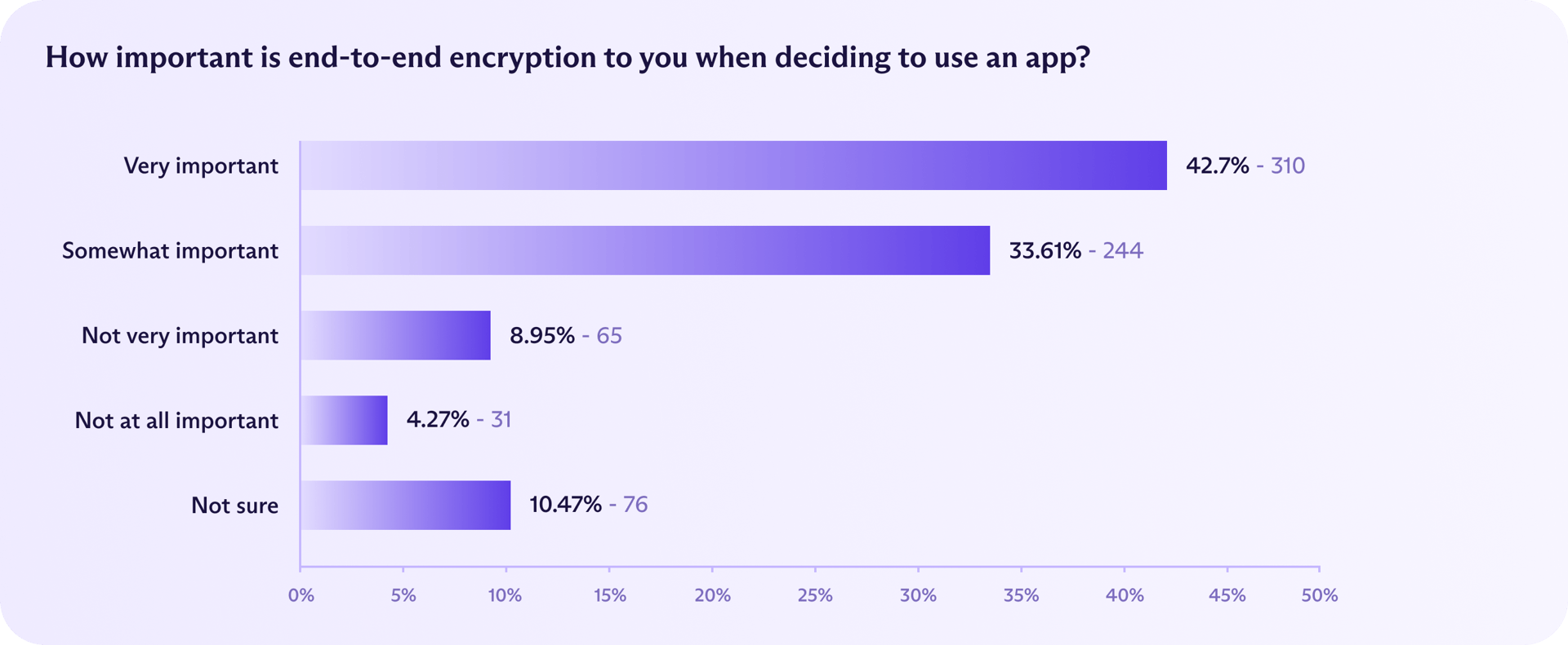 • 73% of people in the UK said E2EE was “very” or “somewhat important.”