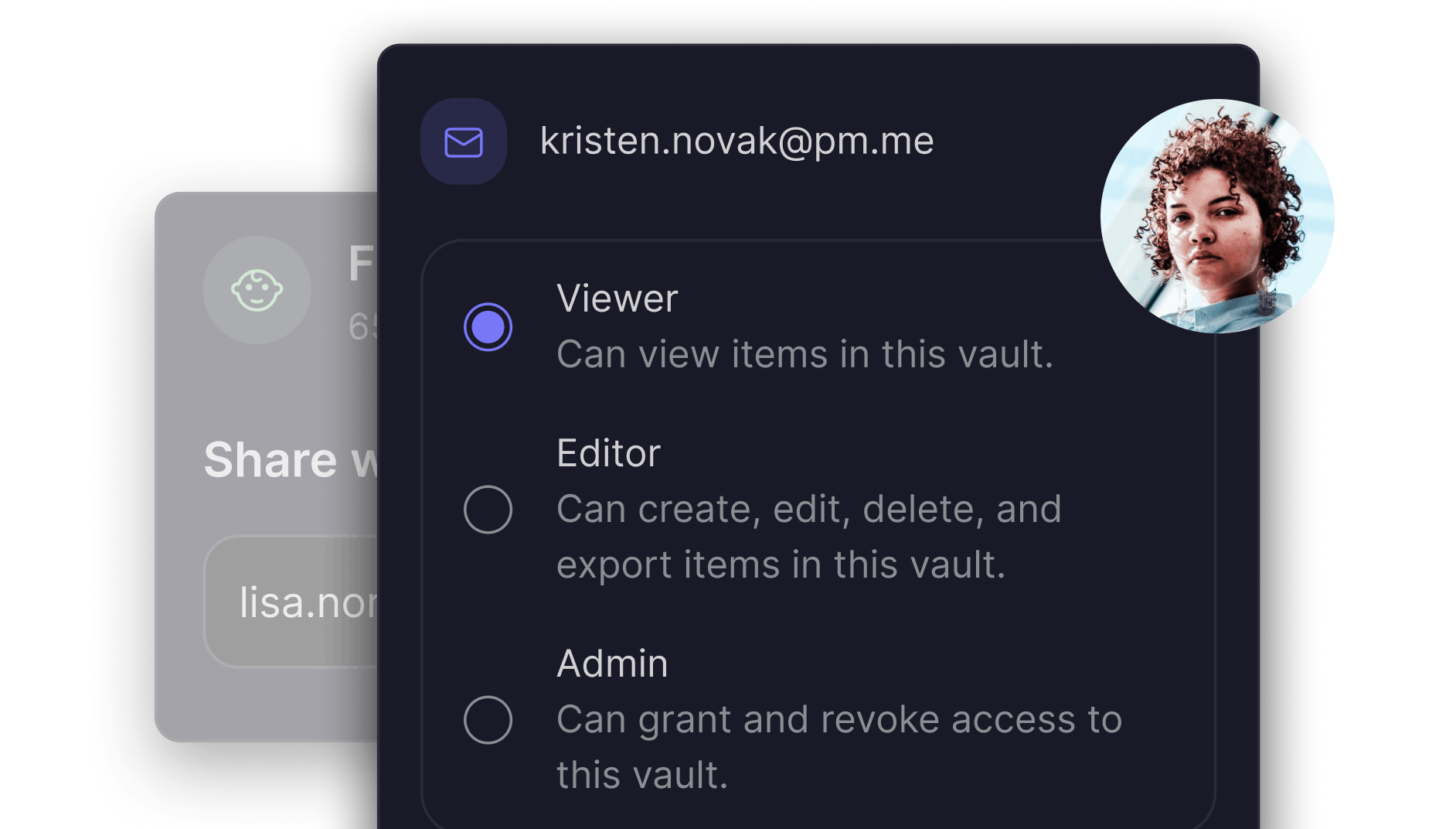 Share a single item or full vault within Proton Pass by entering the email address of the person you want to share with.